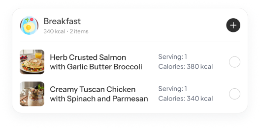 Create weekly meal plans tailored to preferences, allergies, and real life. Changes sync instantly to the patient app so everyone stays aligned.